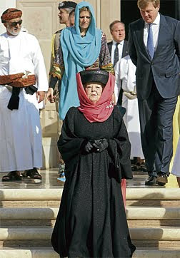 Orang Islam khususnya bertaraf VVIP di Malaysia dan dunia amnya dan seluruh umat Islam patut rasa malu kepada Ratu Belanda, Beatrix yang menutup aurat sepenuhnya......berjubah, bersarung tangan dan kaki dan kepalanya sehelai rambut pun tak terjelir keluar ketika melakukan lawatan di sebuah masjid di sebuah negara Teluk.Baginda memberitahu wartawan, baginda berterampilan demikian kerana semata-mata menghormati agama Islam.